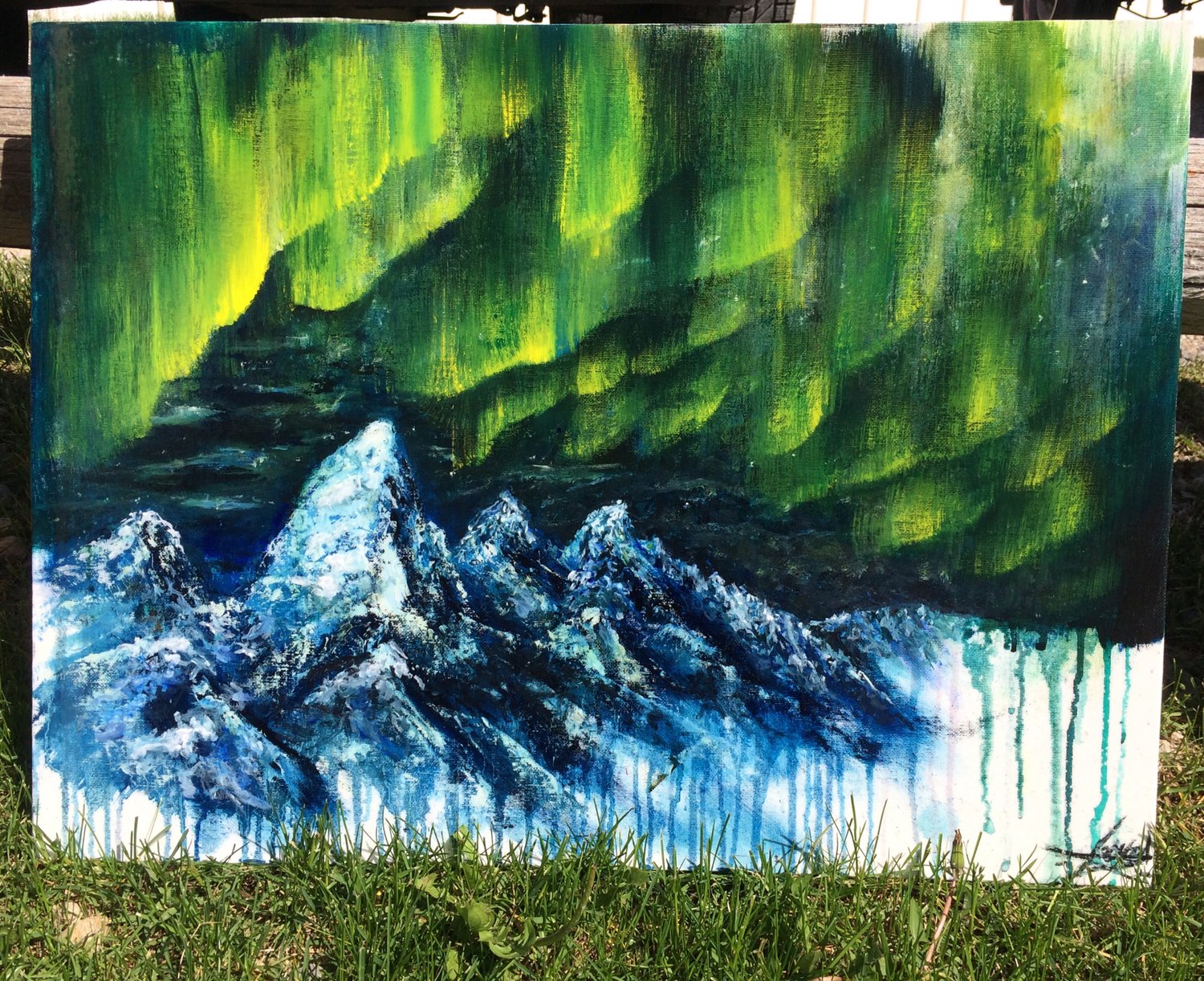 MANIFEST | Aurora Borealis Above the Grand Tetons Original Acrylic & Oil Painting