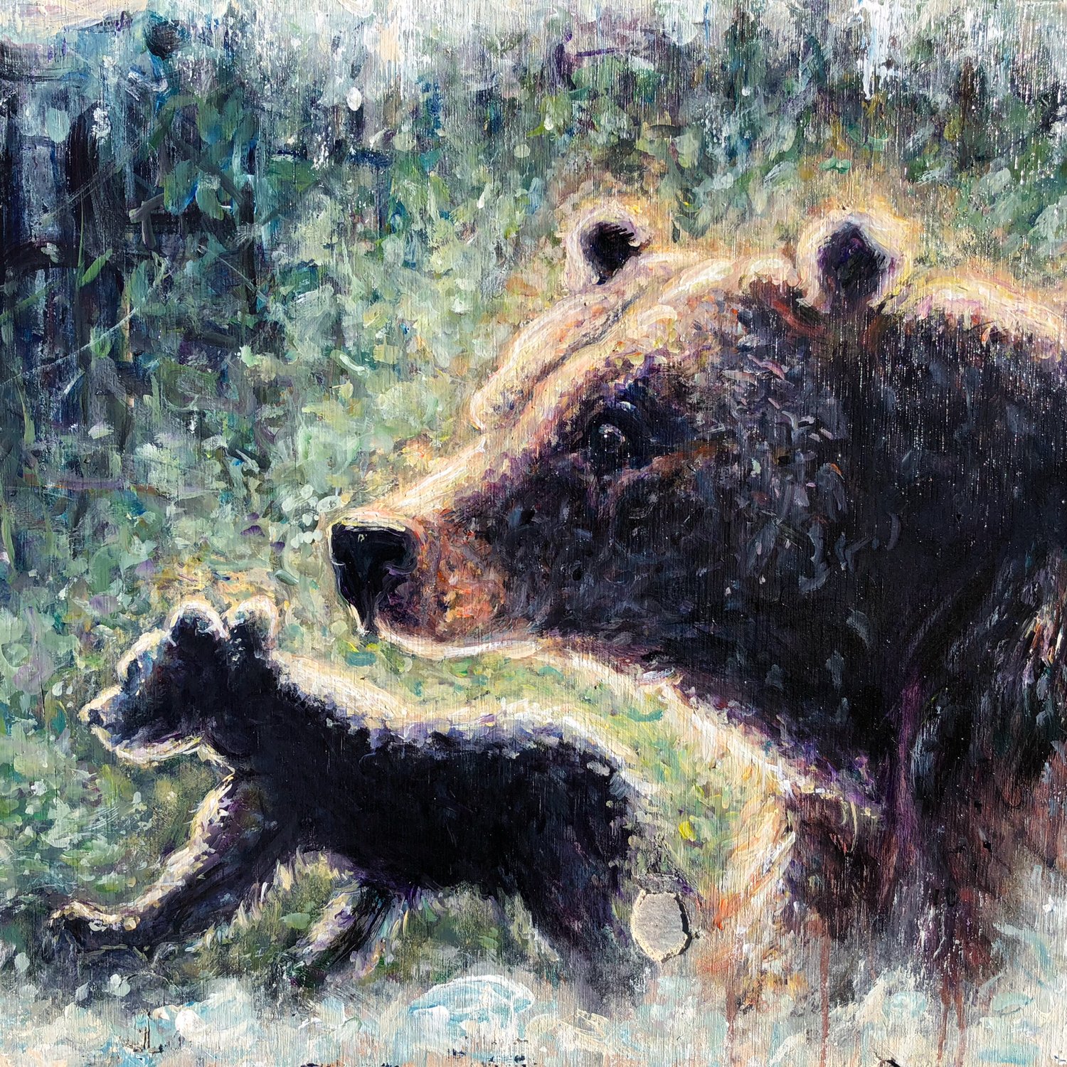 AUGUST SKIES | Original Acrylic Grand Teton Grizzly Bear Family Portrait Painting