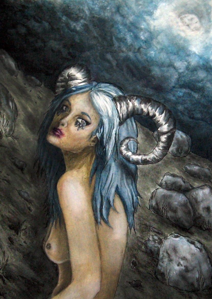 T R A N S F I X E D | Original Acrylic Demon Babe Dark Portrait Painting