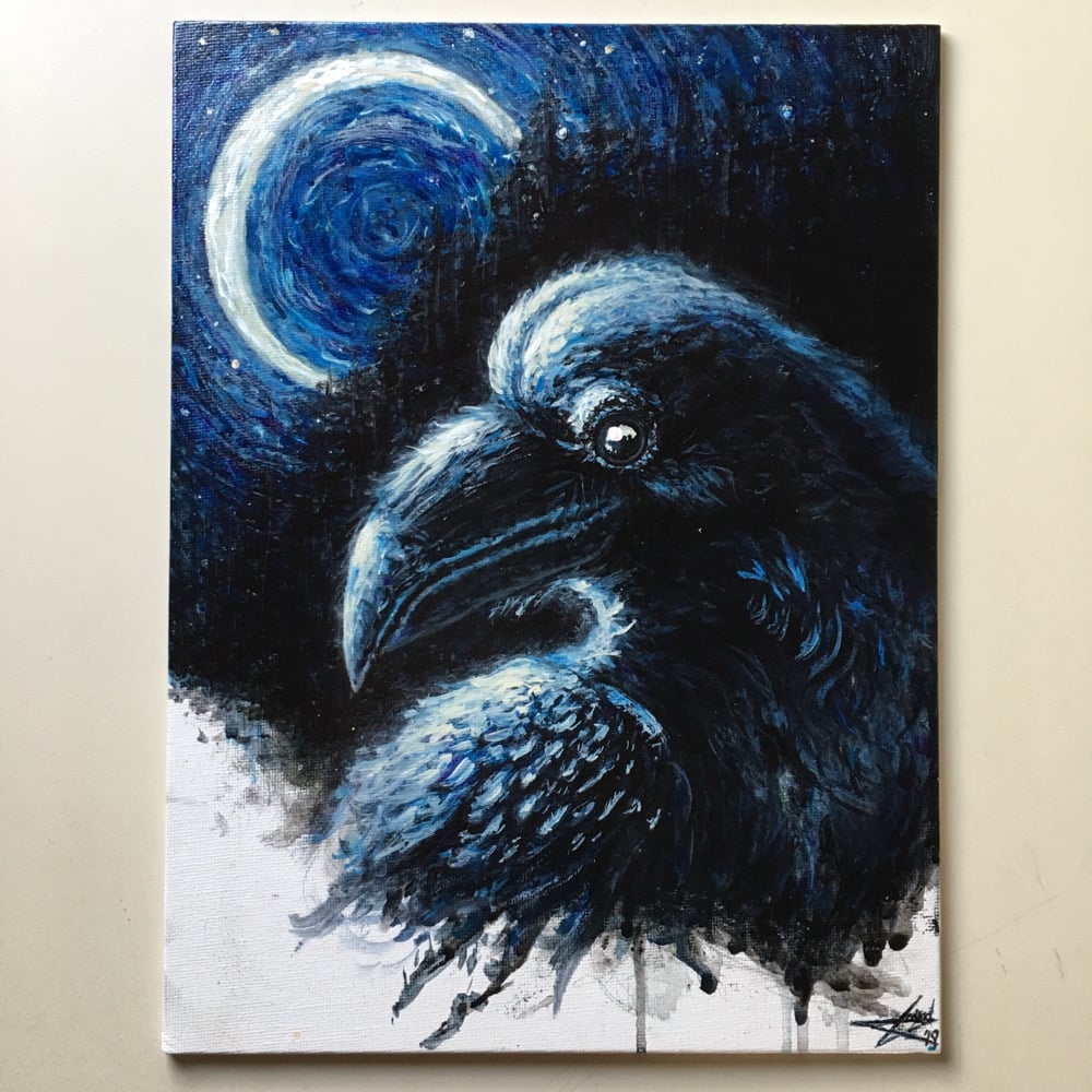 CIGAM | Original Mixed-Media Raven Portrait Painting