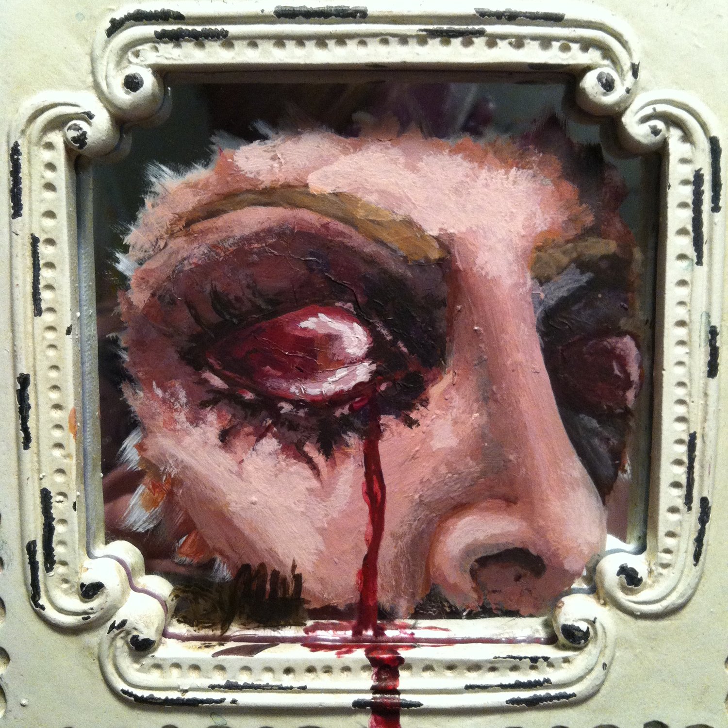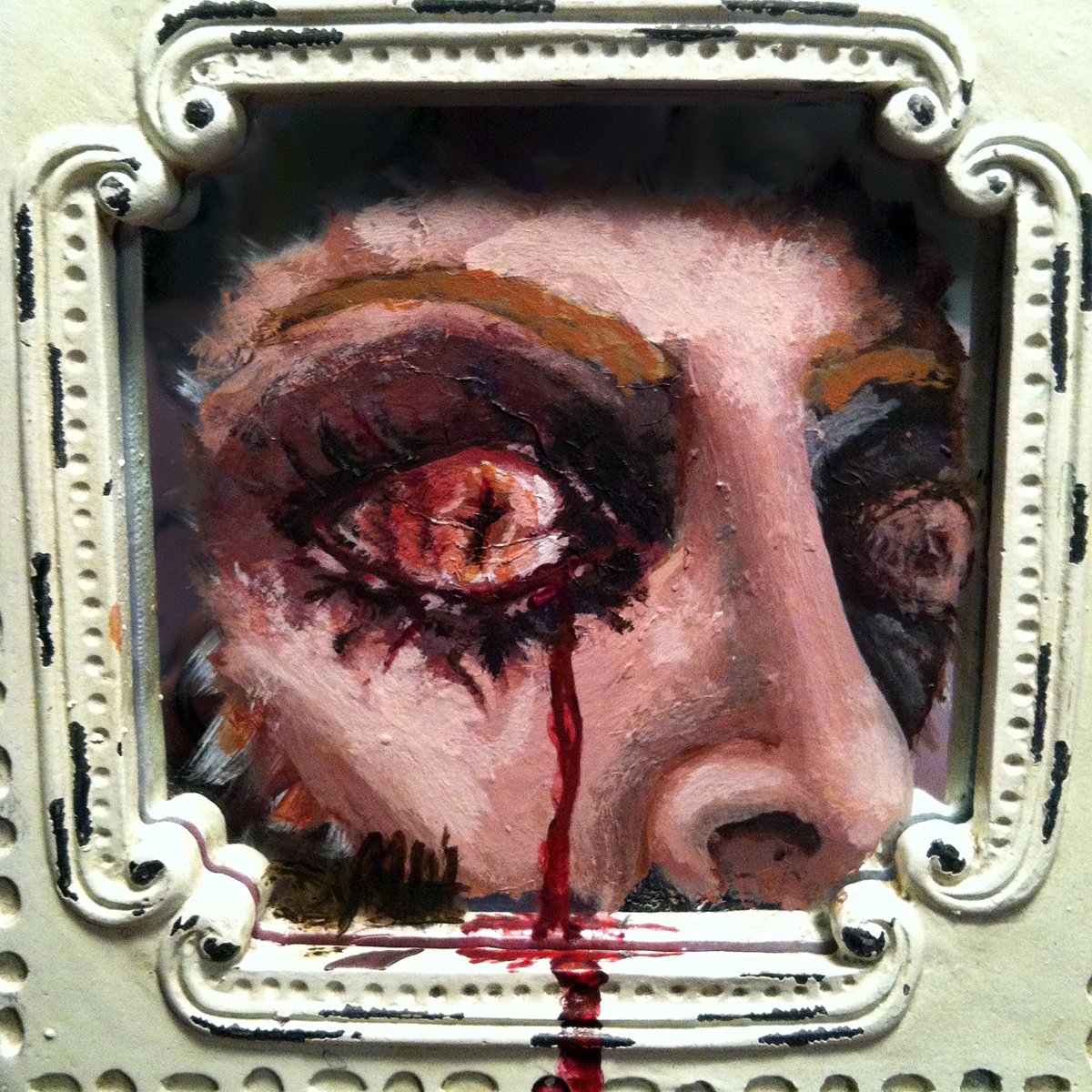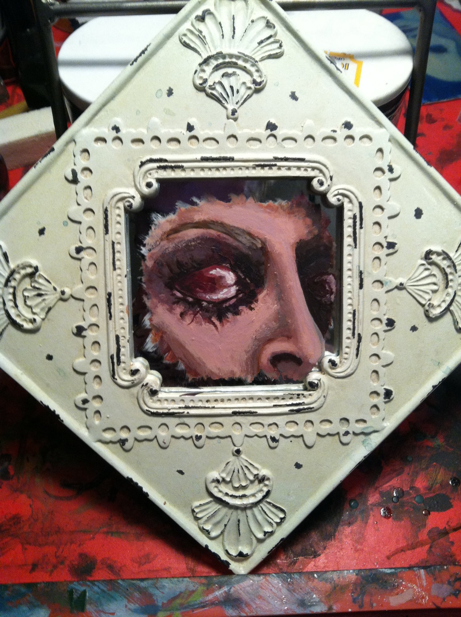 Custom hand-painted 8” x 8” vintage frame w/ a 4” x 4” glass window