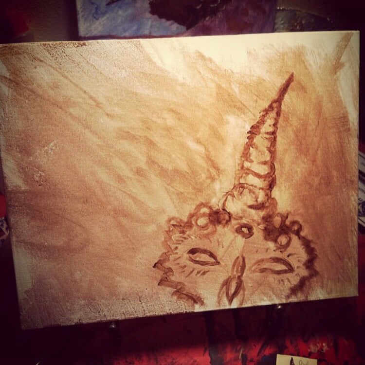 Original piece approx. 11" x 14" - printed 8.5" x 11" among an off-white raw paper border. Acrylic on canvas panel - replicated texture among printed area.