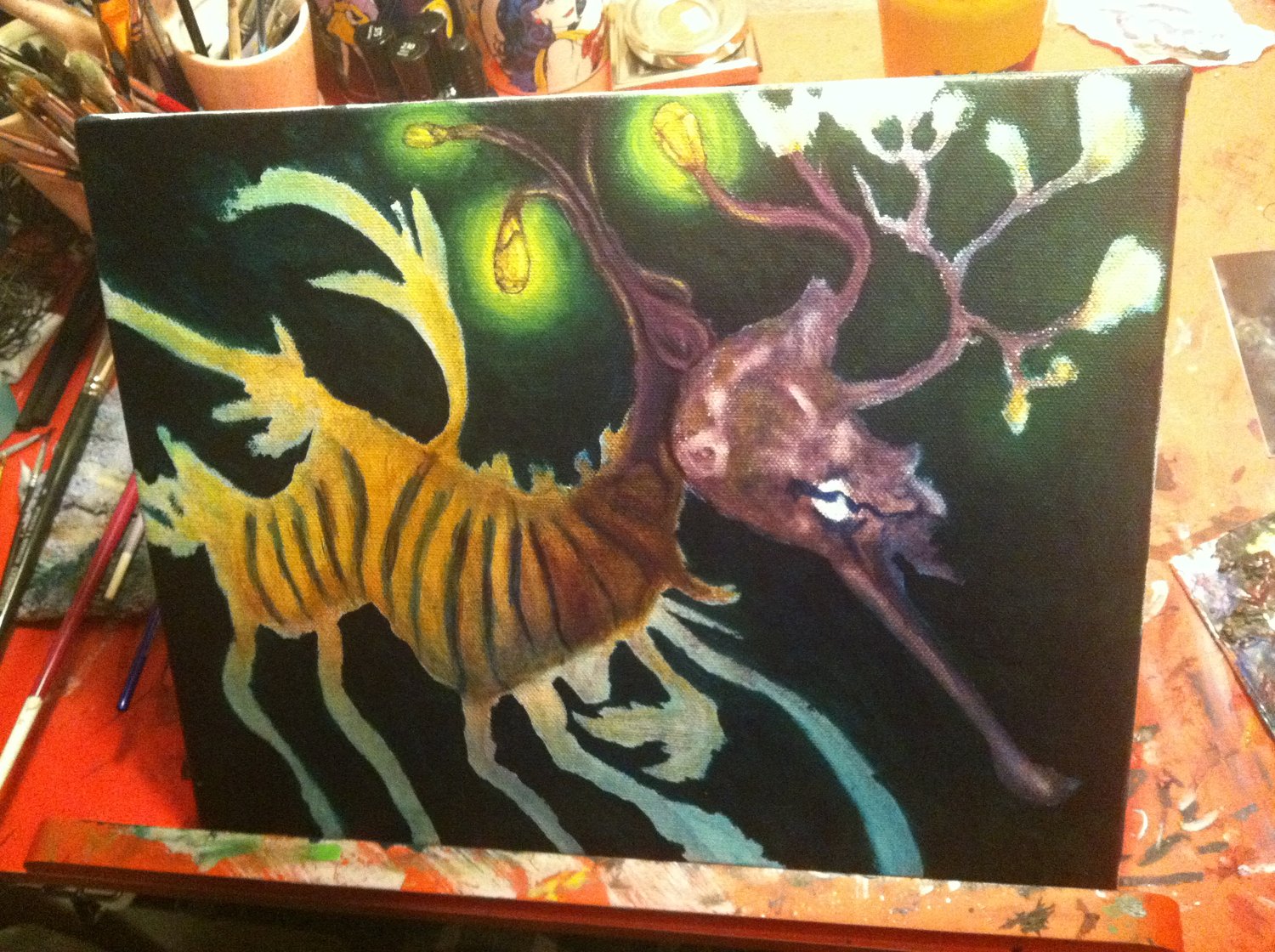 LANTERN OF THE DEEP | Original Acrylic Leafy Seadragon Creature Concept Design Painting