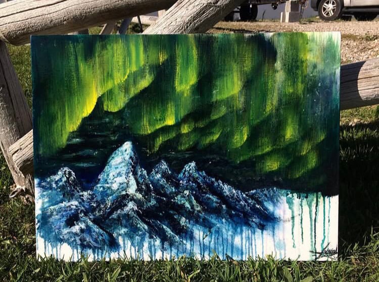 MANIFEST | Aurora Borealis Above the Grand Tetons Original Acrylic & Oil Painting