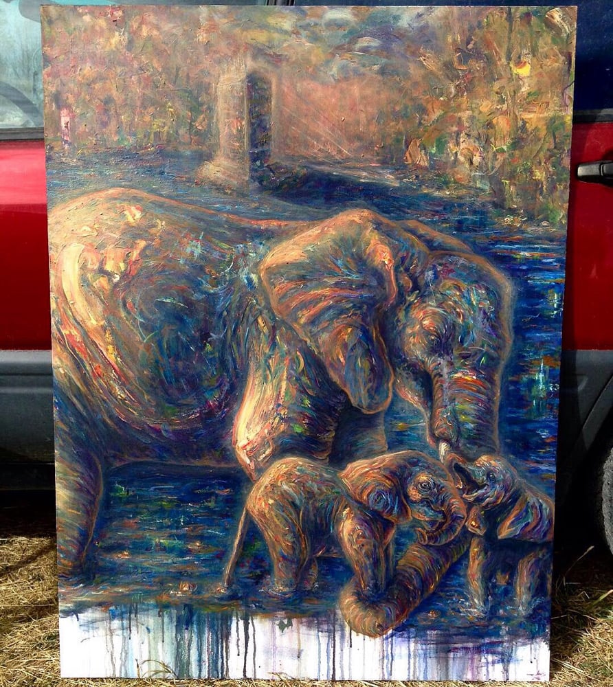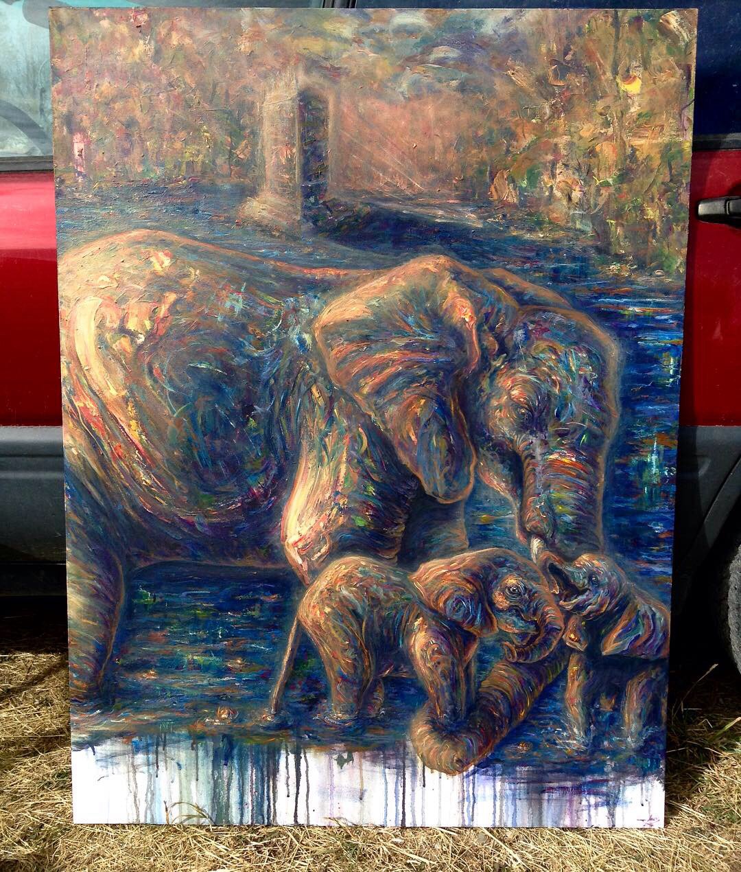 RESOLVE | Original Mixed-Media Elephant Family Portrait Painting