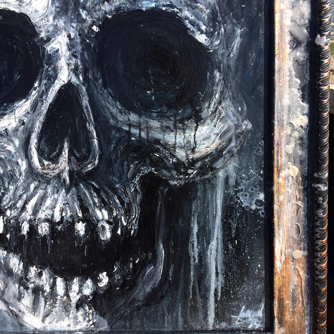 SMILE ANYWAY | Original Custom-Framed Mixed-Media Skull Painting