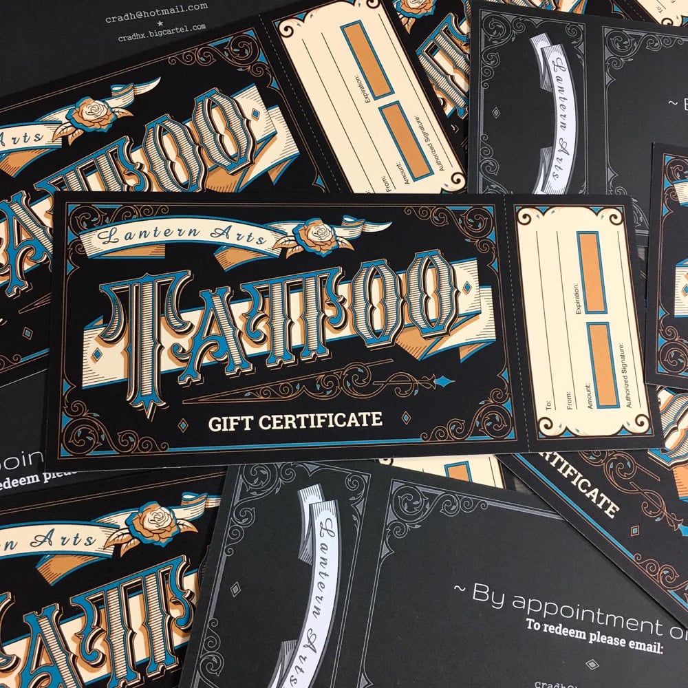 Lantern Arts Tattoo Gift Certificate's now available—treat yo'self & someone else! 🎟
