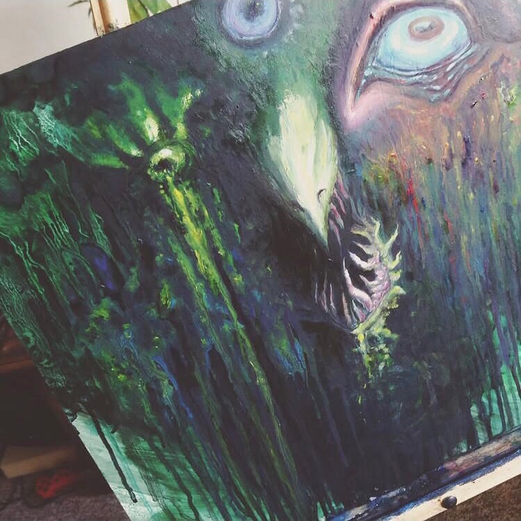 Oil/acrylic/aerosol on found foam (?) board