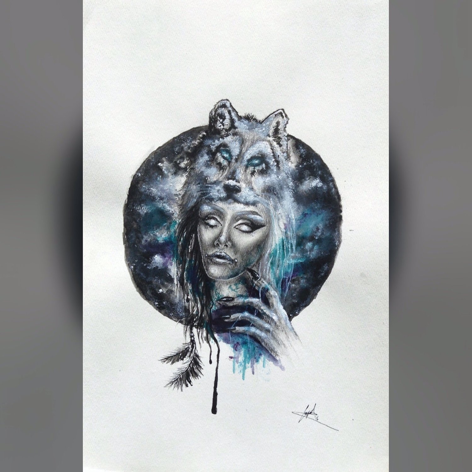 TRUST | Original Mixed-Media Wolf Woman Hollie Pryce-Jones Portrait Painting