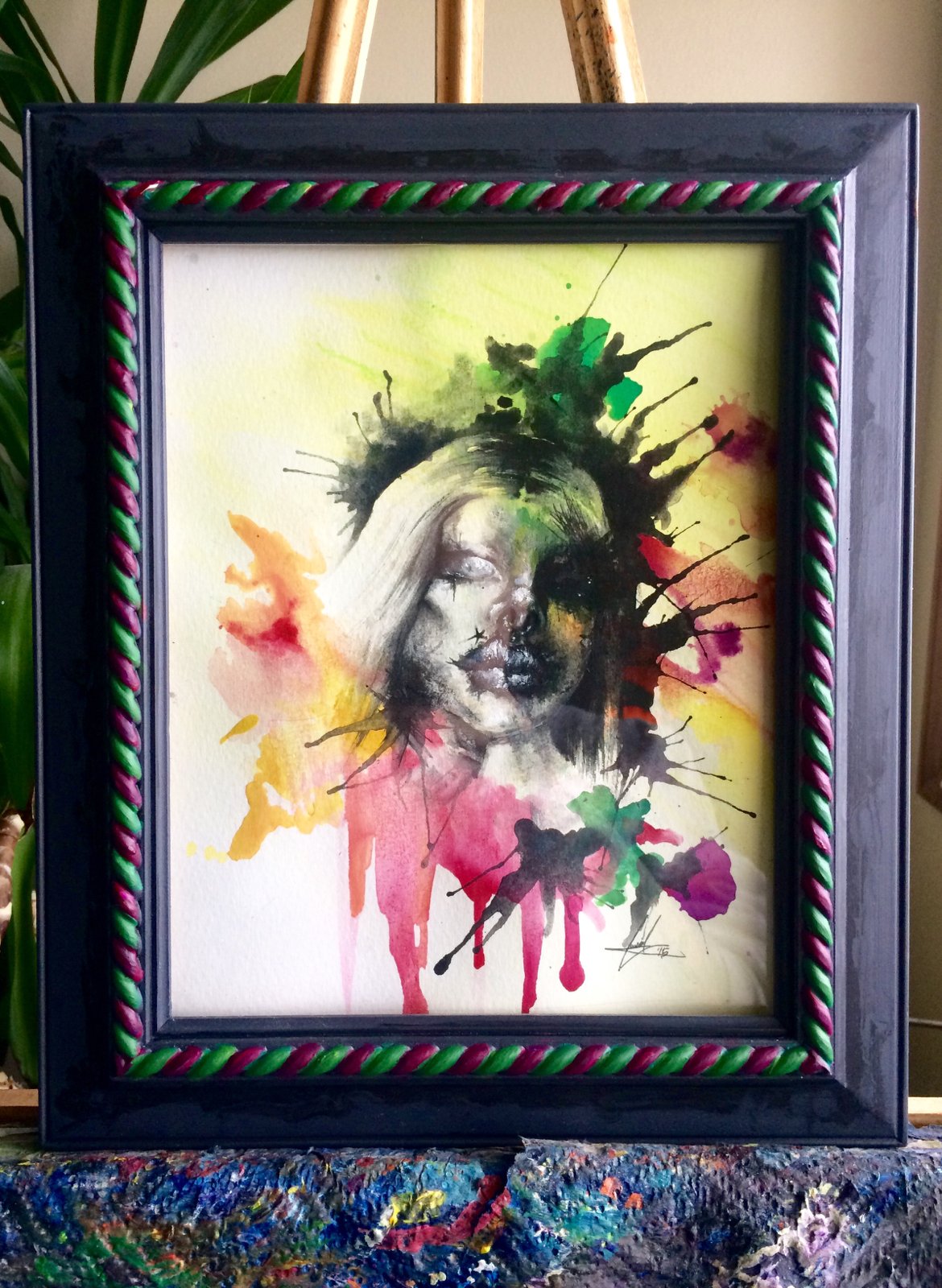v.EX | Custom-Framed Original Mixed-Media Portrait Painting