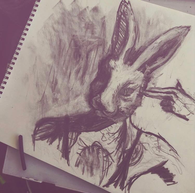 Assorted charcoals, pitt pens, fire, colored pencil, ink on paper